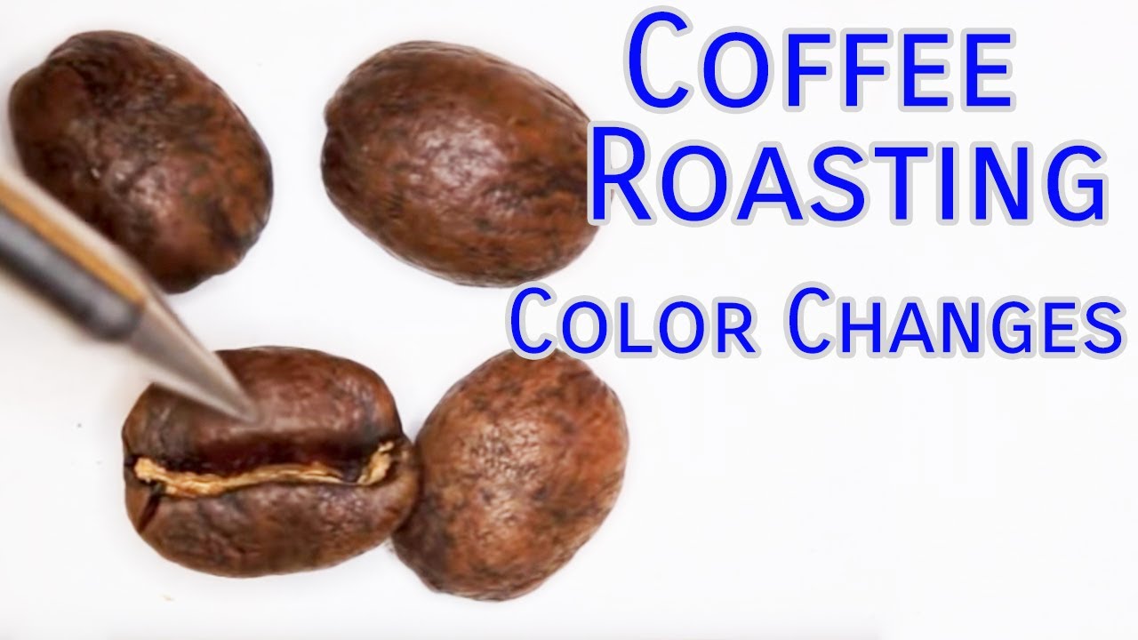 درجات تحميص القهوة و تغير لون حبوب القهوة هو أحد الطرق لتحديد مستوى التحميص، ولكن لا يمكن الاعتماد فقط على هذه الطريقة لذلك يجب الاستعانة بمزيد من العلامات مثل سماع صوت التشقق الأول والثاني وخروج الرائحة العطرية المميزة.يوضح الفيديو التالي التغيرات التي تحدث في لون حبوب القهوة أثناء التحميص: